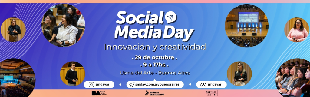Este 29 de octubre se realizará el Social Media Day Buenos Aires: Innovación y Creatividad en la Usina del Arte, en el marco de la semana TecWeek. El evento se desarrollará de 9:00 a 17:00 hs, con un break a las 13:00 hs con una duración de una hora y media. Habrán food-trucks disponibles por la zona, para que los participantes disfruten durante la pausa, antes de retomar las actividades a las 14:30 hs. Habrán charlas enfocadas a tendencias digitales, redes sociales, inteligencia artificial, turismo, redes sociales, creación de contenidos, marketing, comunicación e influencers.